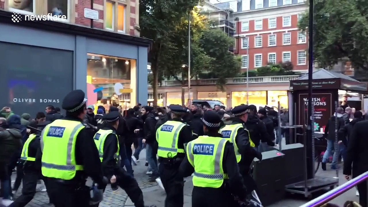 Hooligans roma in action vs supporters lazio.
